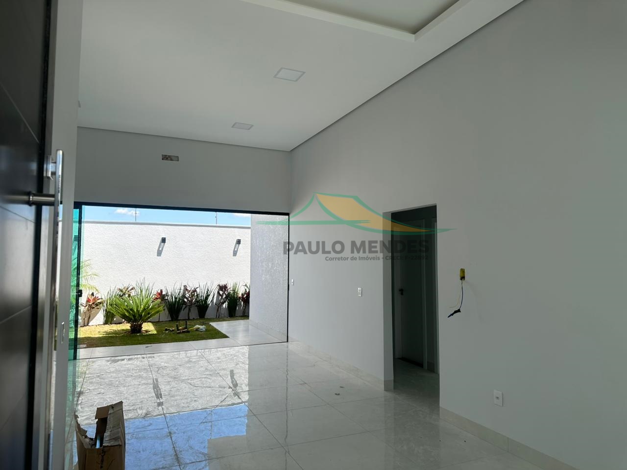 Portão eletrônico, cerca elétrica e portas em PVC brancas.